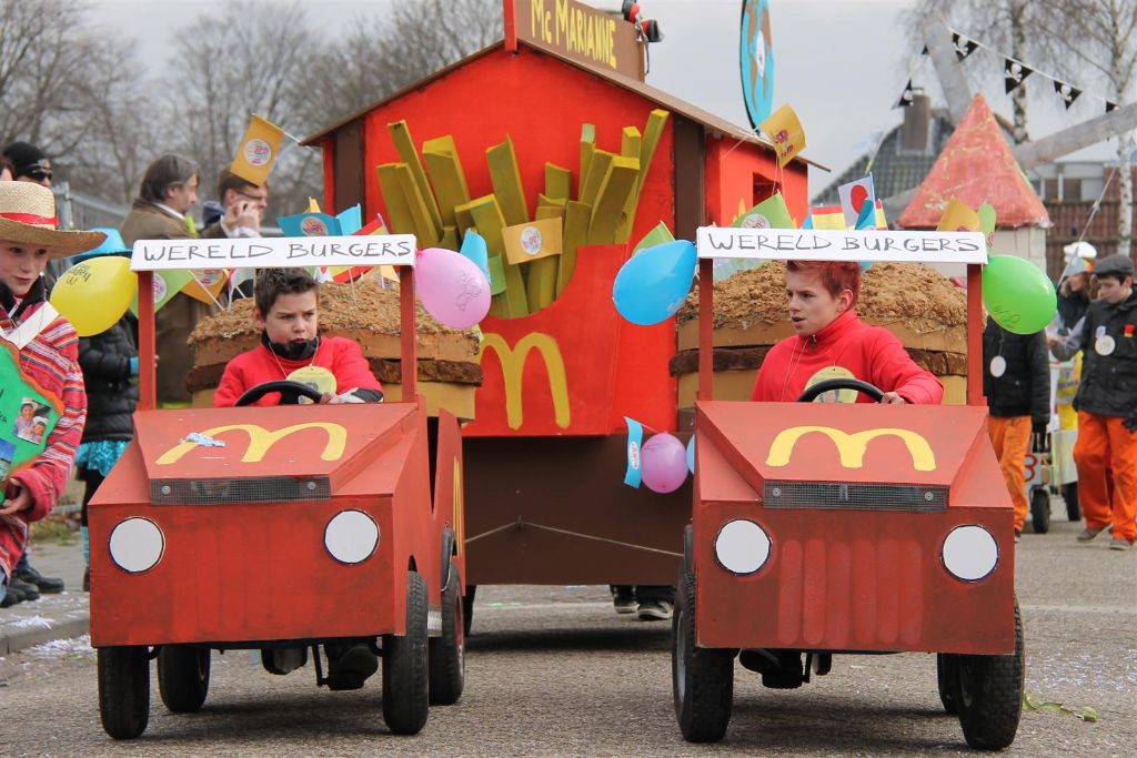 Met een geweldig menu van: cupcake, friet, snoep, oliebollen, taart en knakworst; een kinderfeestmaaltijd voor Carnaval.