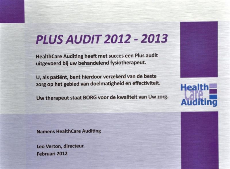 Bij de audit voor de Plus Praktijk wordt getoetst of de bedrijfsvoering, verslaglegging en dossiervorming aan de hoogste eisen voldoen.