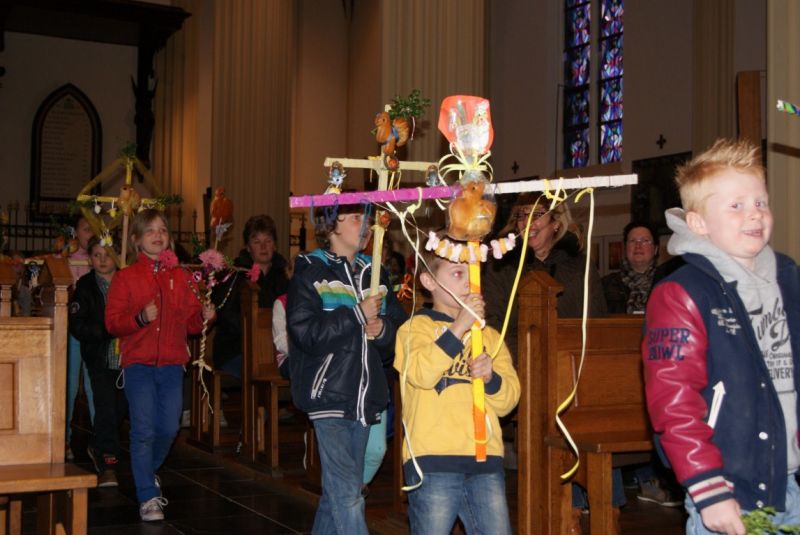 Geef mij je angst… Lam Gods dat de zonder van de wereld wegneemt… We bidden het straks. Dit wordt de week van het samen dragen. We hoeven onze last niet alleen te dragen, er is steeds iemand die veel eerder die last gedragen heeft. Er zijn ook mensen die naast ons lopen en die ons helpen. Misschien zijn wij dat zelf wel voor anderen. Misschien zijn wij wel die mensen die hoop terug geven waar anderen hun onzekerheid, hun twijfel, hun angst aan ons toevertrouwen. Misschien gebeurt het wel als we ons palmtakje halen: het groen van de hoop dat we steken achter het kruis.