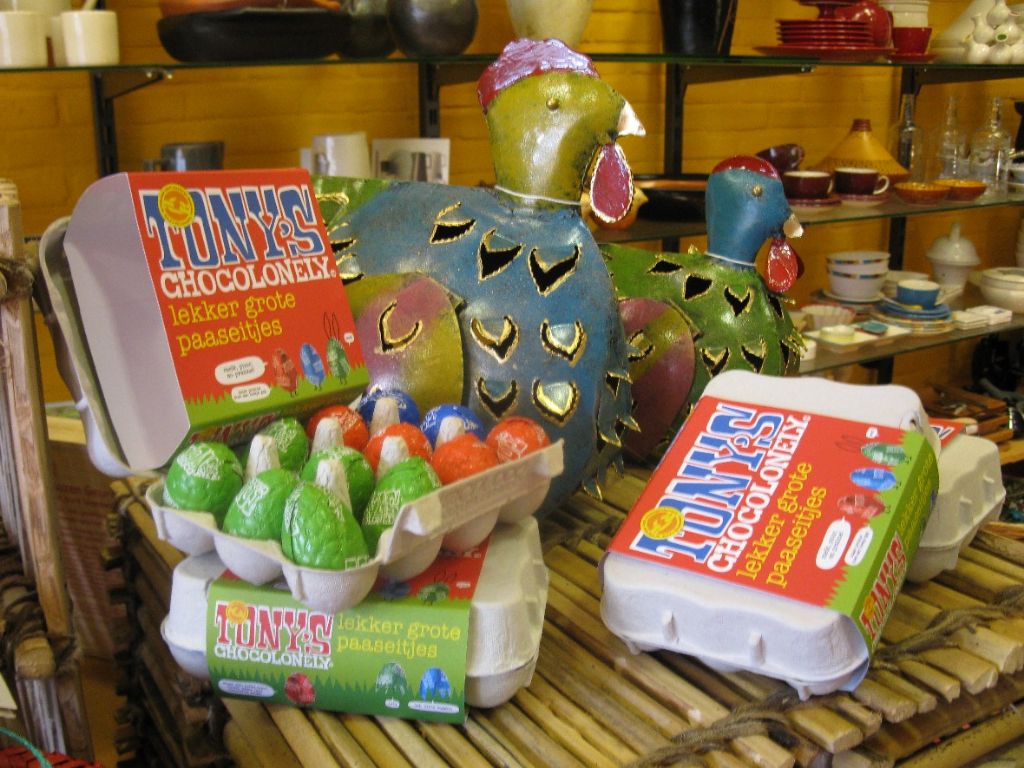 De Wereldwinkel Heeswijk-Dinther verkoopt originele cadeaus en (h)eerlijke levensmiddelen uit andere culturen. Producten zijn gemaakt met respect voor mens en milieu. De werkwijze van Tony’s Chocolonely past helemaal bij de doelstelling van de wereldwinkel en dat is de reden dat de Wereldwinkel de repen van Tony’s Chocolonely in het food-assortiment heeft. Alle chocolade van het bedrijf is Fairtrade-gecertificeerd en het streeft ook nog eens naar 100% slaafvrije chocolade.