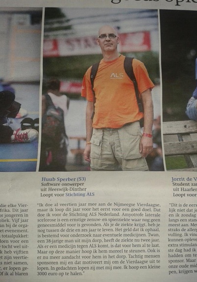 Inmiddels is de 4 Daagse al tot een eind gekomen en heeft Huub zich rond half 6 gemeld bij de finish. De laatste dag is zeer goed verlopen met, gelukkig, een zonnetje erbij! Het verslag van de laatste dag zal in de loop van morgen geplaatst worden. Zie www.facebook.nl/hadeejer of onder dit bericht voor het artikel dat vandaag in "Trouw" werd geplaatst!