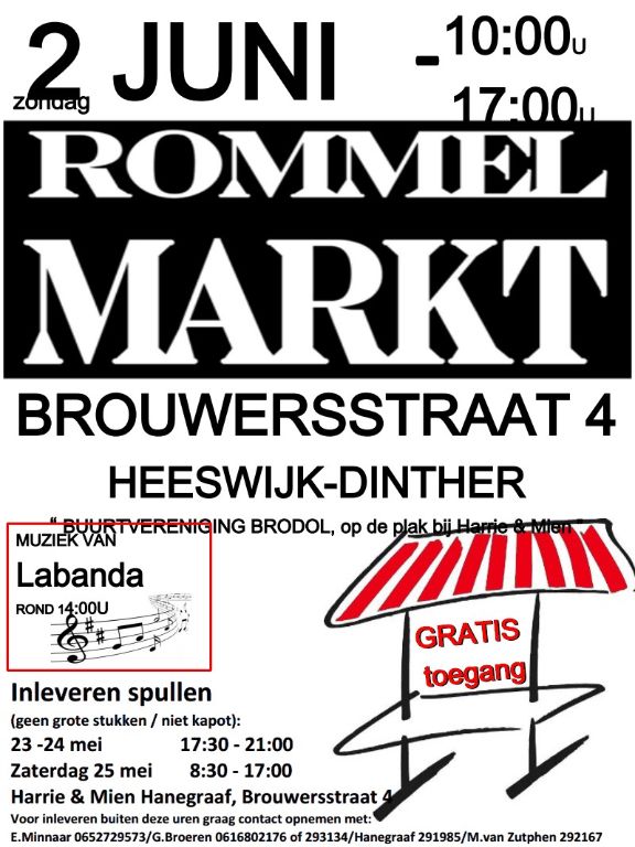 Op 2 juni wordt er een Rommelmarkt gehouden op het ruime erf van Harrie en Mien Hanegraaf,