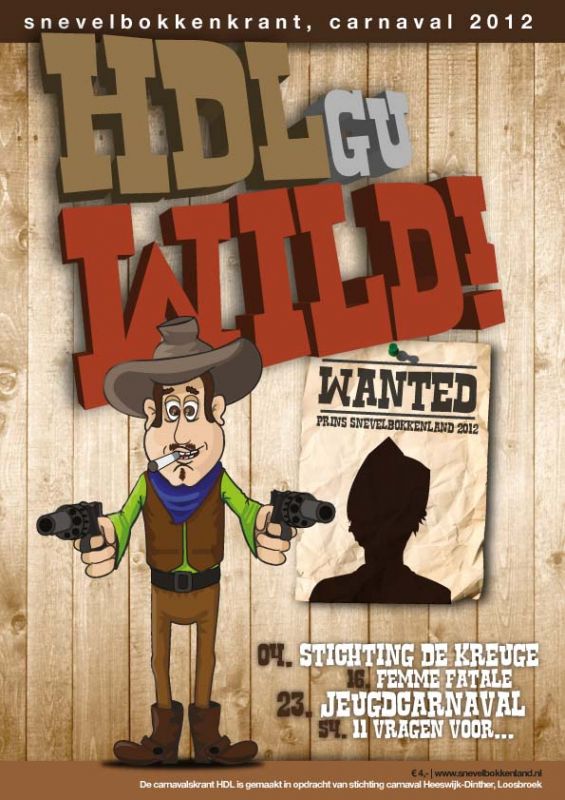 Wilt u ook uw evenement in deze agenda opgenomen zien? Geef dit dan minimaal 2 weken vooraf, per post, e-mail, fax of telefoon, door aan VVV kantoor Heeswijk-Dinther, Raadhuisplaza 18a, 5473 CX Heeswijk-Dinther, e-mail “HDL gu Wild!" is het thema tijdens carnaval 2012 in Snevelbokkenland. Binnenkort kunt u weer alle carnavals nieuwtjes in de nieuwe Snevelbokken carnavalskrant lezen. Dit jaar weer geheel in kleur gedrukt . Vol interviews, foto's en columns, soms serieus of met een knipoog.