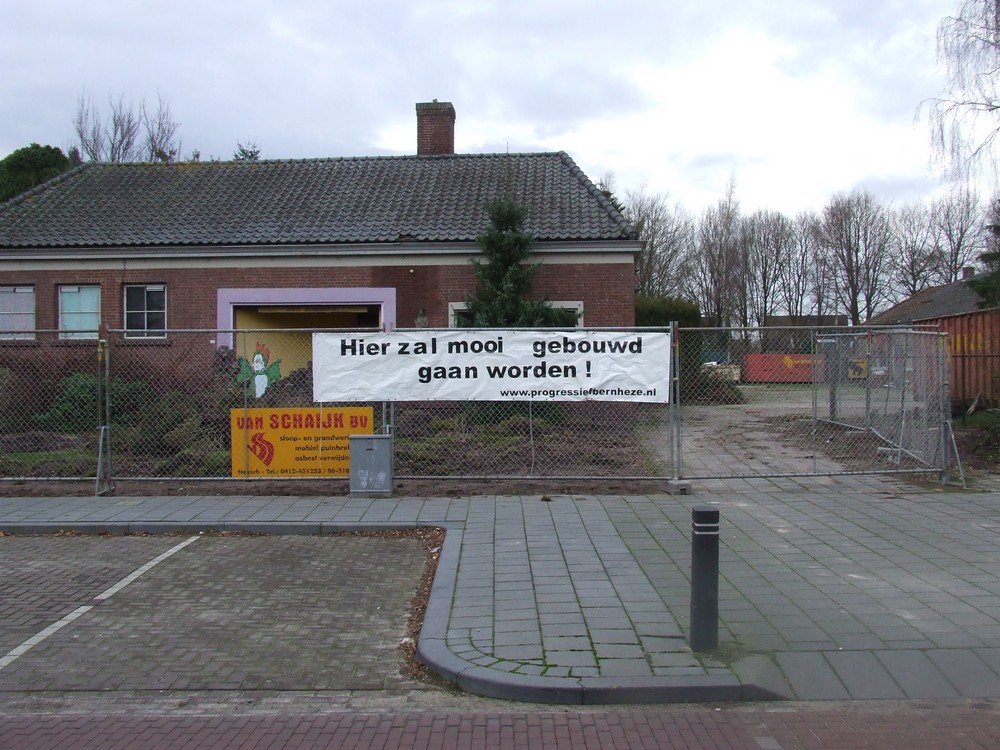 Bij de lege plek van Ter Weer hangt sinds vrijdag een spandoek. 4 jaar geleden hadden wij er een spandoek hangen met de tekst : “Hier zou mooi gebouwd kunnen worden”. Bijna 4 jaar is de gemeente bezig geweest met het invullen van deze lege plek en met name wethouder Hans van der Pas heeft er hard aan getrokken, temeer, omdat Progressief Bernheze hierbij de verkiezingen van 2010 een punt van gemaakt had.