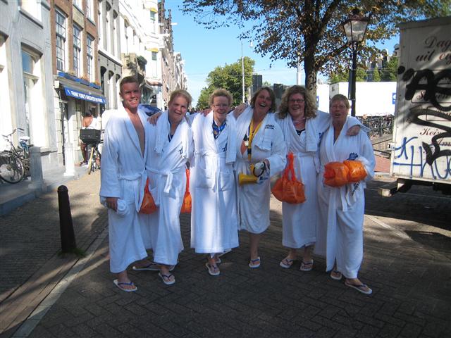 Het was rose woensdag in Nijmegen en dat betekent dat de homoseksuelen in de stad centraal staan. Die dossen zich zonder uitzondering in het rose uit met kleding, pruiken en wat je allemaal nog meer kunt bedenken. En de muziek: smartlappen natuurlijk. De binnenstad stond op zijn kop, want die lui weten wat gezelligheid en feesten is! Even blijven hangen om de sfeer te proeven en je zou bijna vergeten dat je door moet lopen, want om 5 uur sluit de afmelding en dan ben je uitgevallen.