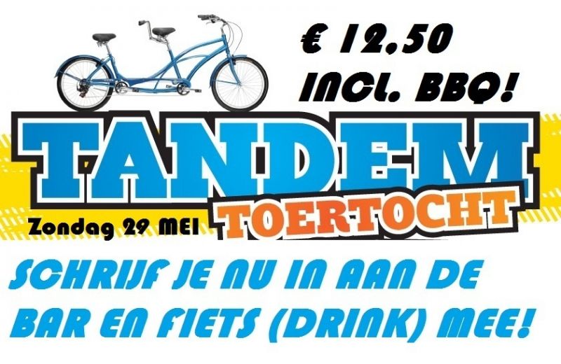 Supergezellig met de tandem langs diverse cafés met als eindstation natuurlijk De Toren, met BBQ voor maar ? 12,50 per persoon!