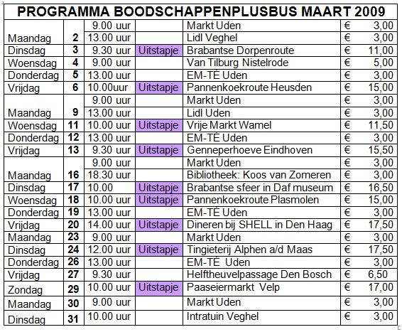 Mensen van 55 jaar en ouder uit de gemeenten Uden en Veghel en uit Heeswijk, Dinther en Loosbroek worden op afspraak thuis opgehaald om met een groepje boodschappen te gaan doen. Na de boodschappen is er tijd voor een kopje koffie, waarna de deelnemers weer thuis worden afgezet. Vrijwilligers helpen de deelnemers bij het winkelen, als dat nodig is.