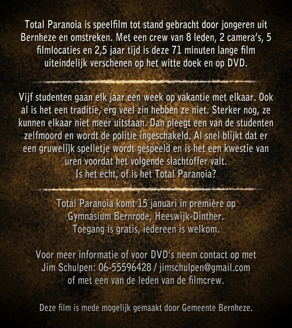 www.total-paranoia.nl.tt Een heel bijzonder product. Er is ook ruim twee jaar aan gewerkt.