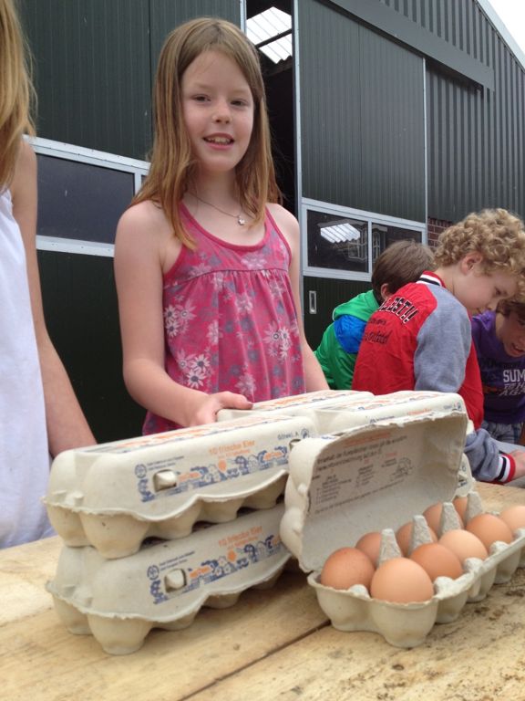 Behalve de taarten gingen ook boerderijproducten zoals melk, eieren en aardbeien over de toonbank. Tussen het handelen door, leiden de kinderen bezoekers rond op ‘hun’ boerderij.
