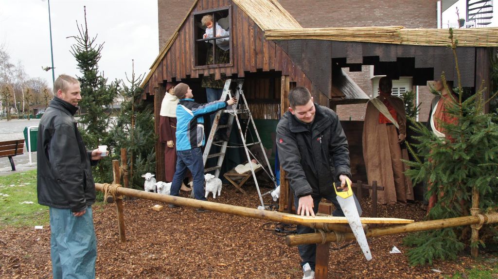 Het ontbreekt natuurlijk niet aan het nodige vee en er is behalve een kribbe met kindje Jezus, Maria en Jozef ook een heilige Engel te spotten.