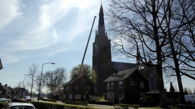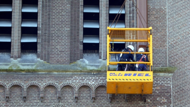 De antennes tegen de toren, op een hoogte van 32 meter, moesten vervangen worden door een kraan. Een goede communicatie is hierbij noodzakelijk omdat er