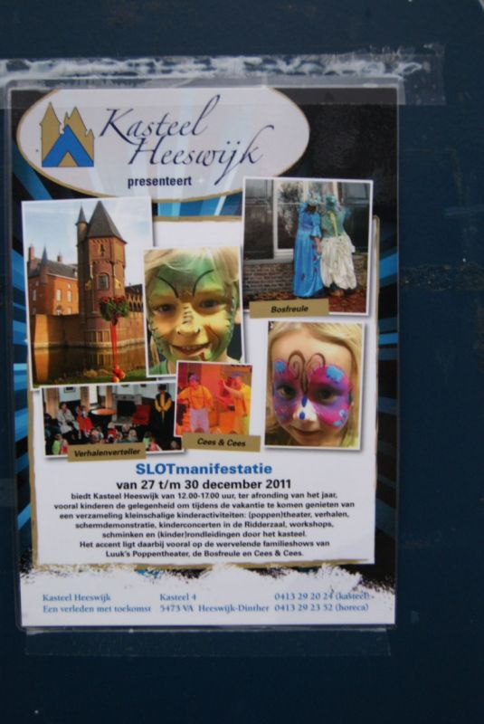 101229-lvdv-SLOTmanifestatie_06Van 26 tot en met 30 dec. vindt de Slot-manifestatie plaats op Kasteel Heeswijk. Als afsluiting van een succesvol jaar worden er optredens en klein-schalige activiteiten georganiseerd, waarbij het accent ligt op verteltheater, verhalen, geschiedenis en muziek.de SLOT-manifestatie