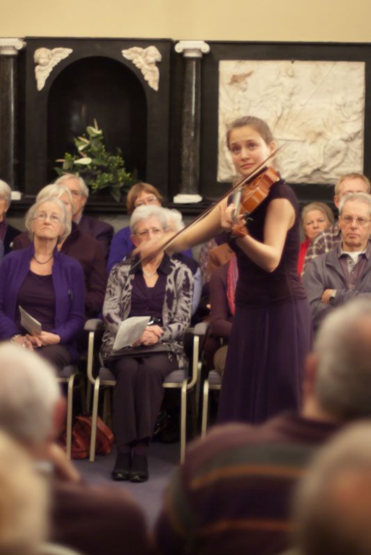 101123-RvH-Laureatenconcert-12Op 23 november vond in de Wapenzaal van Kasteel Heeswijk het Laureatenconcert met finalisten van het Prinses Christina Concours plaats. Voor de pauze was er een optreden van gitarist Tuur Segers (14 jaar) en altvioliste Dana Zemtsov (18 jaar) met pianobegeleiding van Cathelijne Noorland.