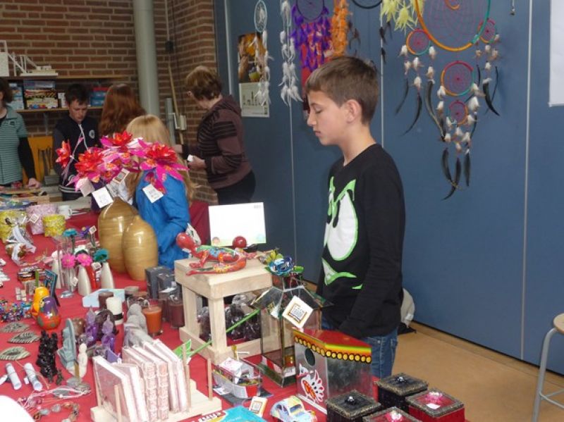 120508t_Palet_WWVandaag is op basischool 't Palet weer het runnen van een deel van de Wereldwinkel begonnen. Leerlingen van groep 8 hebben mee inkopen gedaan in Culemborg, aritkelen geprijsd, en zijn vanmorgen begonnen met de verkoop aan medeleerlingen, ouders, opa's en oma's
