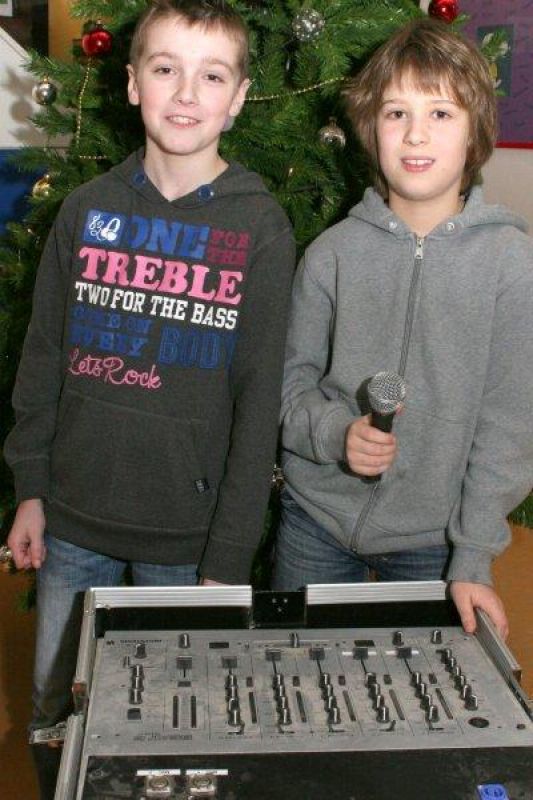 GlazenhuisJuul van den Heuvel en Dennis Schakenraad zijn de Deejee's as. dinsdag 20 december op de bs. Het Mozaiek. Een half uur draaien ze in het glazenhuis op school verzoeknummers van het aanwezige publiek . Er zijn  twee professionele vrijwillige Deejee's: Jos de Vries en Joep van Lankveld.