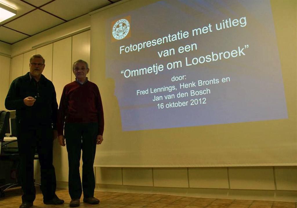 Vandaag was er bij Heemkundekring “De Wojstap” een lezing met uitgebreide presentatie van historische foto’s en de hedendaagse situatie van boerderijen en hun bewoners langs het “Ommetje om Loosbroek”. Het “Ommetje” is een wandeling van een tot anderhalf uur. Bij de lezing werd ook ingegaan op natuurhistorische aspecten op de route. Ook kwamen allerlei historische feiten en anekdotes aan bod.