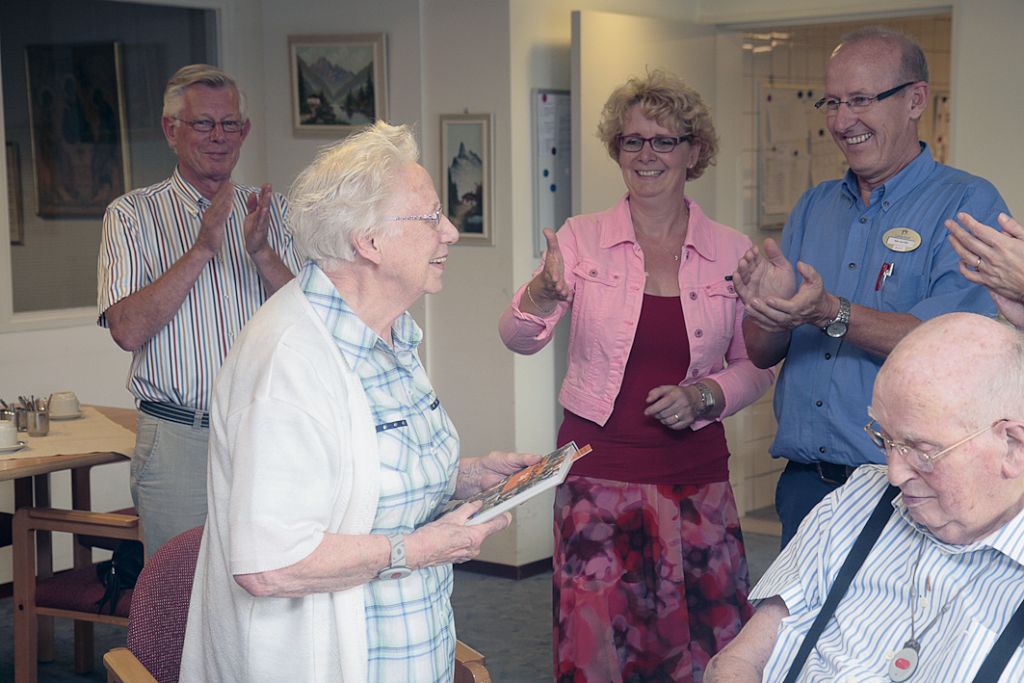 In de huiskamer van Elstar bood Ben van Dijk – "de smeerolie van Laverhof"- het eerste exemplaar aan, aan Mw. Verkuijlen. Daarna werd met grote instemmende reacties de film bekeken en vooral besproken. Klik hier voor foto's.