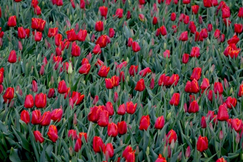 Langs de Vorstenbosseweg kunnen voorbijgangers weer genieten van prachtige tulpenvelden. Een fraai gezicht met dit zonnige weer en de dorstige tulpen krijgen te drinken.