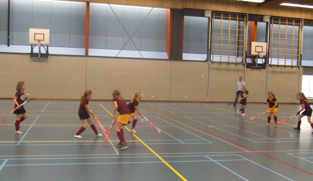 Op zondag 11 januari speelden maar liefst 27 teams van de jongste jeugd (de E6- en E8-tallen) uit Heeswijk-Dinther, Heesch, Schijndel en Berlicum zaalhockey in Sportzaal Bernrode Heeswijk-Dinther. Ze vinden het top dat er in de winterstop toch wedstrijden zijn, zo mooi in de buurt. Ook op zondag 1 en 8 februari zijn er wedstrijden in Bernrode. Op de foto het Meisjes E3 8-tal van Hockeyclub HDL in actie.
