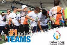 Het Nederlands handboogteam heeft zich dinsdag bij de Europese Spelen in Bakoe als eerste geplaatst voor de finaleronde op het olympische onderdeel recurve. Het trio van Oranje eindigde in de kwalificatie op de eerste plaats met een totaal van 2012 punten. Wit-Rusland werd tweede, gevolgd door Frankrijk. Rick van der Ven uit Oss was topschutter met 679 punten, gevolgd door Sjef van den Berg uit Heeswijk-Dinther en Mitch Dielemans uit Geldrop.