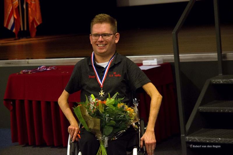 Nederlands Kampioen nu met 399 punten. Alleen in de derde serie liet hij, met een 9,4, één puntje liggen. Een knappe prestatie.