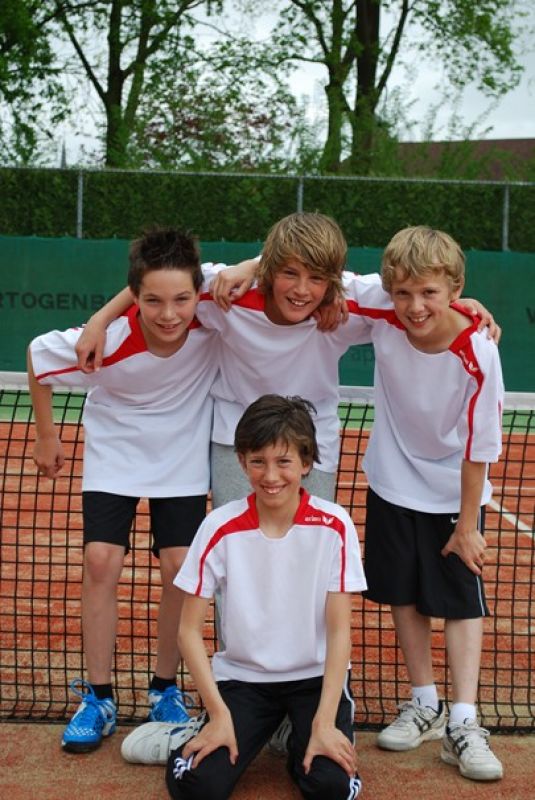 Ook het ‘Rood’ team mocht thuis spelen. Dit team bestaat uit 4 kinderen die allen ongeveer 1 jaar lid zijn van de tennisvereniging en externe competitie spelen op een minibaan. Voor de eerste keer wisten zij alle 6 wedstrijden te winnen. Goed gedaan en ga zo door Evi van Lamoen, Laurette van Abelen, Jaap van Eerd en Amanda van Lankveld. Deze kinderen van wie er 2 nauwelijks 6 jaar zijn, laten zien dat je al op hele jonge leeftijd goed tennissen kunt leren door les te volgen, volop mee te doen aan interne activiteiten en door zelfs al competitiewedstrijden tegen andere clubs te spelen in teamverband. Dit laatste mede gesteund door enthousiaste ouders die het team begeleiden.
