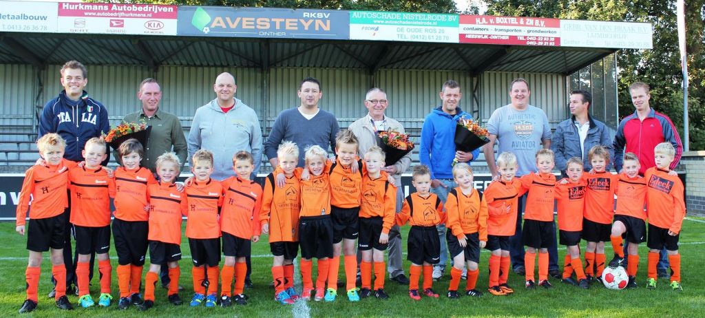 Natuurlijk dienen deze jonge kanjers er ook netjes bij te lopen wat maakte dat een aantal sponsoren bereid zijn geweest om deze teams van shirts te voorzien. Deze werden op zaterdag 28 september overhandigd. De drie sponsoren (Lunenburg, Edeck en Van den Nieuwenhuijzen) waren uitgenodigd en werden in de bloemetjes gezet. Namens de spelertjes, de leiding en Avesteyn werden hartelijke bedankt voor hun sponsoring. Daarna werd gevoetbald, 4 tegen 4 op een kwart veldje, een waar feest. Mochten er nog belangstellenden zijn die zich aan willen melden voor het mini-voetbal, de kinderen moeten geboren zijn in het jaar 2007-2008