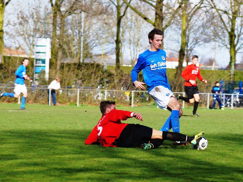 140323 Heeswijk-BerghemSportOp een sfeervol sportpark De Ballendonk ontving het vaandelteam van VV Heeswijk vandaag nummer voorlaatst Berghem Sport. Het zaterdagteam van de blauw-witten vierde hun behaalde kampioenschap en het 2e elftal had ook een belangrijke stap