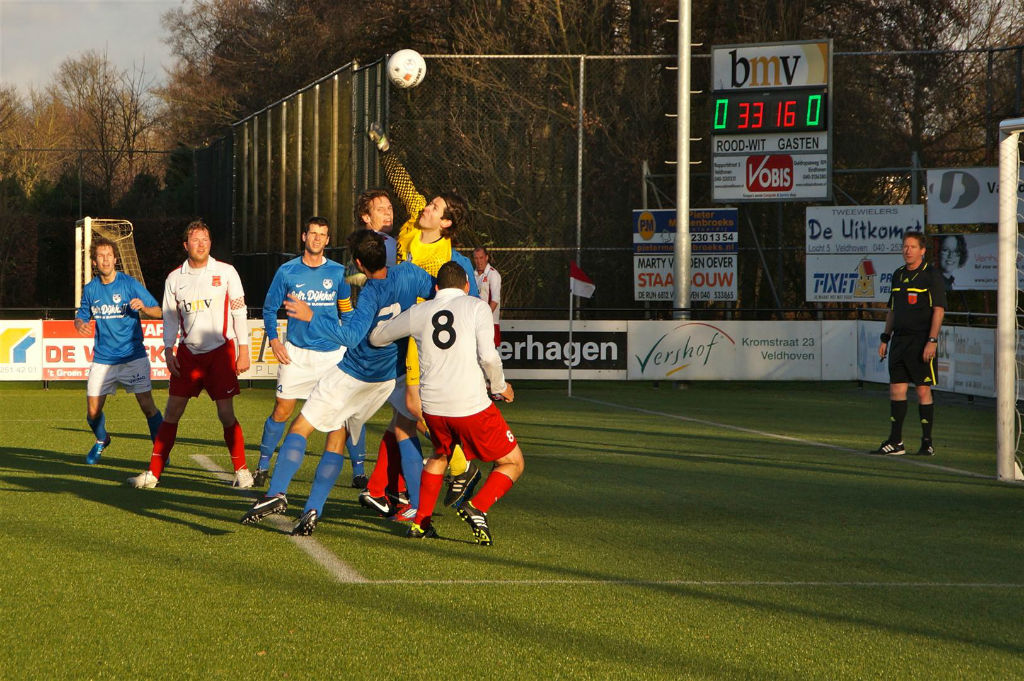 Om half 3 floot scheidsrechter Ooms uit Eindhoven het duel tussen Rood Wit Veldhoven en Heeswijk op gang. De wedstrijd kende een merkwaardig scoreverloop, maar gelukkig voor de blauw-witten gingen de 3 punten mee naar Heeswijk. Meer fotos.